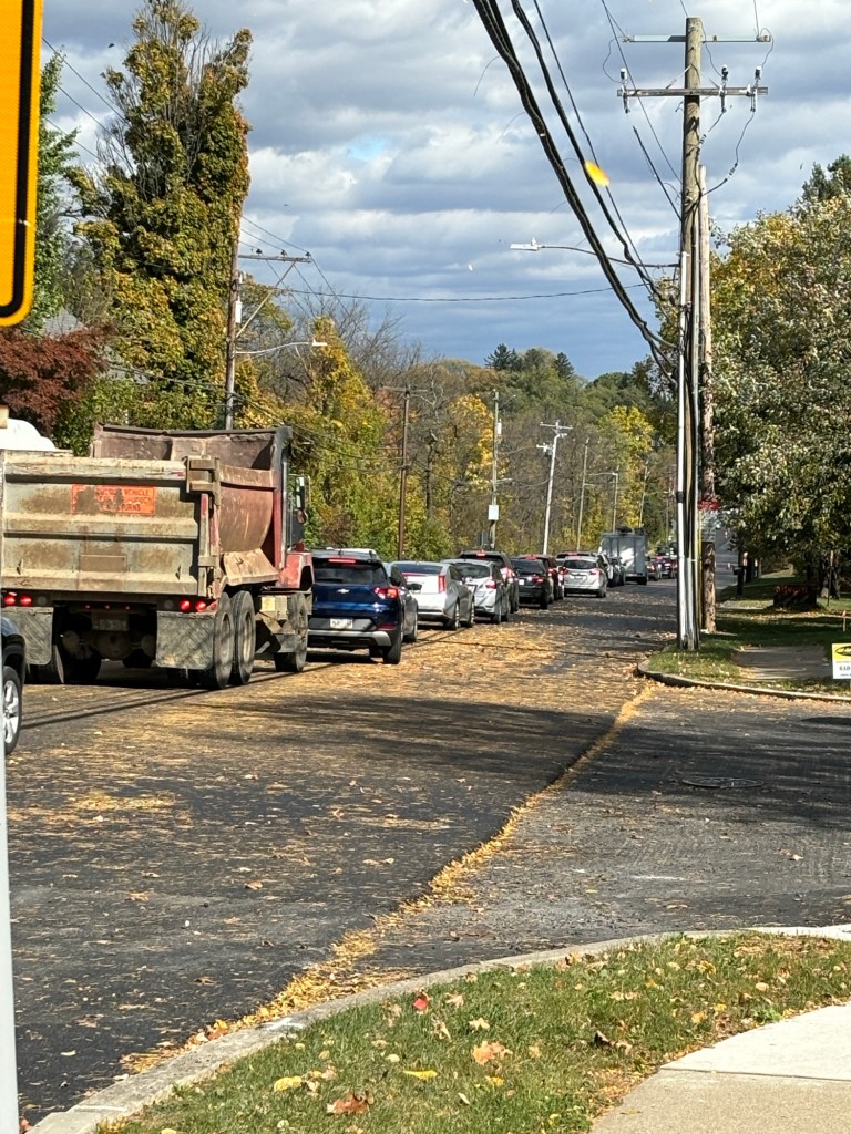 Traffic north and south on Linden Street from sometimes as far back as Macada Boulevard past Oakland Road is being held up today by paving.