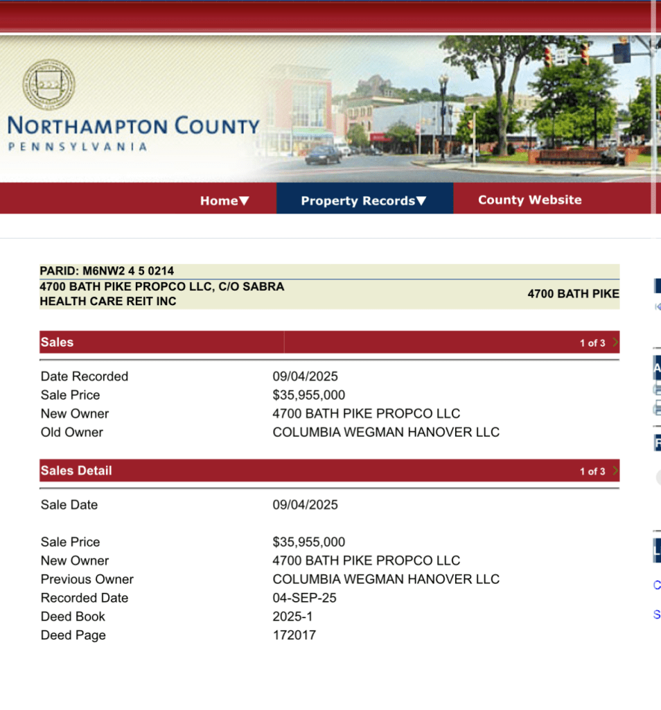 Northampton County records say the sale of the 4700 Bath Pike (Route 512), Hanover Township, property was recorded Sept. 4.