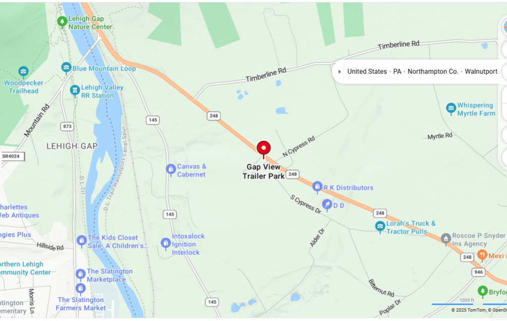 The Gap View Trailer Park in Lehigh Township, just off Route 248, was sold in October, according to Northampton County records. The county recorded the sale on two deeds, with land covering about 1.5 acres.