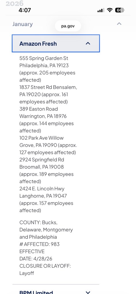 Amazon is firing 983 workers in eastern Pennsylvania as it closes Amazon Fresh stores.