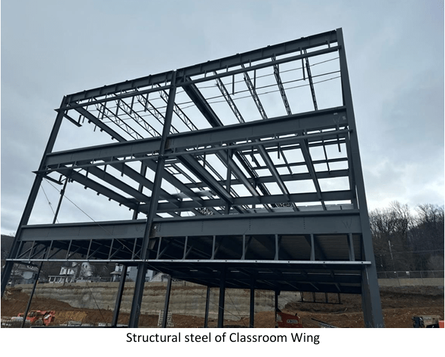 The steel structure of the new school is taking shape, according to photographs posted on the district website.