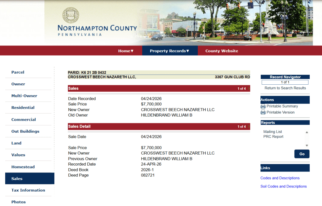 Crosswest describes the property as “within the Lehigh Valley industrial market, with access to Route 22 and Interstate 78. The site includes two maintenance facilities, totaling 25,000 sf, and is situated on 10.3 acres, providing functionality for maintenance, light manufacturing, and outdoor storage uses.”